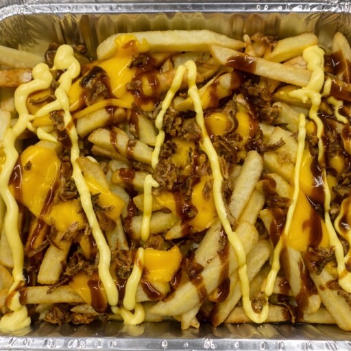 Состав:картофель фри,соль,паприка,сырный соус. Унаги,Чеддер сыр. Куриное филе обжаренное во фритюре. лук криспи.Очеееееень сырно и очень сытно.